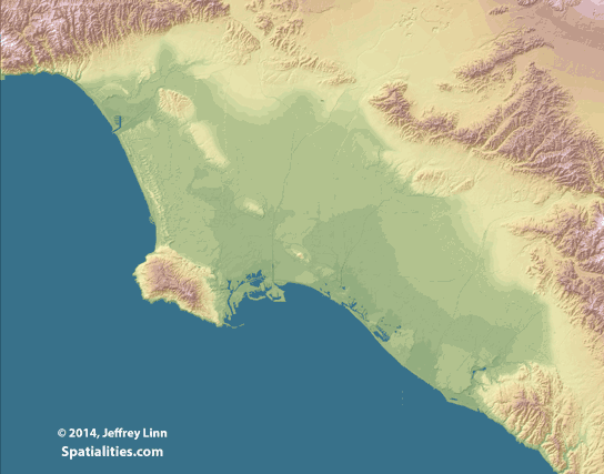 As a follow-up to the Bay of LA map, here’s an animated gif of progressive sea level rise in the LA Basin.